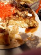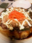 | おお、お好み焼きに見えるね。ちょっとボリュームありすぎるが。 | チャラララ〜ン、チャラララ〜ン、ケーキ乳頭。 | おお、生焼けかと思ったらチーズか。よかった。 | イタタキマンモス。お、これは・・・。 |