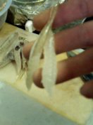いくら洗ってもきりがないのでとりあえずゲソと内臓を外して、甲に切り込みを入れてホネみたいな物体Xを出す。あ、これって昔インコを買っていたときにエサとしてあげたなあ。とりあえず干しておこう。だれか欲しい人いるかな。まあいいや。