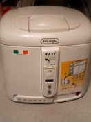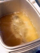 フライヤーを箱からだして、油をドボドボいれるが、500mlを一本全部いれても使用最低量の半分にも見たず愕然。めそめそと油を買いにいく。