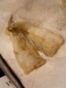 | シロギス。「てんや」よりおいしいよ。 | タケコプター型メゴチ。 | カレイのようなヒラメ。 | 餃子の皮。油が・・・。 |