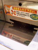 調子に乗って何皿も注文していたら、当然テーブルの上がゴチャゴチャしてきた。これは食べたお皿の枚数で料金を計算する回転寿司の宿命なんだけれど、恐るべきくら寿司、ここでも画期的な発明が! 。なんとテーブルのレーン側に食べ終わったお皿を入れる穴があり、そこにガシャガシャとお皿を入れると、何枚食べたのか自動で計算してくれるのだ。これでテーブルの上はいつでもきれいなまま。これならいつも50枚くらい食べちゃって店内中の注目を独り占めしちゃう女の子も、これならテーブルに「山積みの皿」ができないからOKだね!