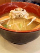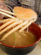 | カニのみそ汁。 | うん、食べづらい。でもそこがいい。 | マグロアボガド巻き。外人の食べ物だな。でも好き。 |