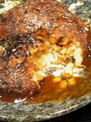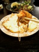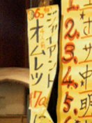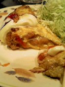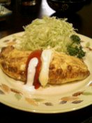 おっと、店の看板メニューの納豆頼むの忘れていた。うーん、どれもアヤシイ。よし、フランス納豆(オムレツ風)とからふる納豆(ハンバーグ風)に決定。根拠ナシ。まずきたのがフランス納豆。フランスと納豆っていう組み合わせはどうなんだろう。料理自体は、「こまったさんのオムレツ」にもでてきた納豆オムレツ。納豆好きなので別に困らない。上に載っているケチャップとマヨネーズがフランスなのかな。どちらかというとアメリカンな気もするが。