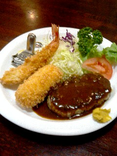 | おいしそうだ。 | ハンバーグに海老フライに海老クリームコロッケ。素敵。 |