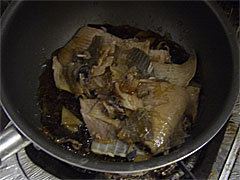 さて、本日のメイン、エイの煮付け。まずくはないけれど、労力の割に美味しくない。煮汁の味付けが下手くそなのと、煮た時間が短かったからか、味がちっとも染みこんでいない。ついでにいえば、皮は剥いでから煮た方がいい。これらはすべて素材を生かせなかった料理人の問題だと思う。本来は「煮て食うとうまい」はずだ。