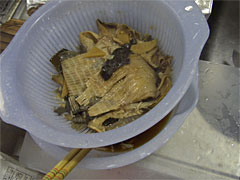 | ザルで漉す。 | 煮汁と具材をまぜたら冷やして完成。 |