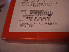 | すごい黒目がちな金目鯛だな。 | 牛脂とかビーフエキスが入っているのはご愛敬。 |
