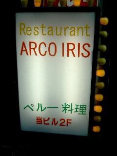ちょっと遅めの昼飯を食べに、五反田駅東口から徒歩5分、ペルー料理「ARCO IRIS」に勝負しにいった。異国料理はいつだって勝負だ。ARCO IRIS、今調べたらギリシャ語で「虹の女神」という意味らしい。なんでペルー料理屋の店名でギリシャ語がでてくるのかはよくわからんが。ええと、ペルー料理。だめだ、ちっとも料理のイメージが湧かない。テキーラにタコス・・・はメキシコか。まあいいや。とりあえず腹が減った。