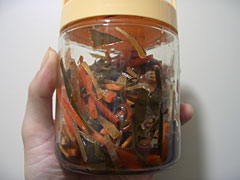 昆布、するめ、人参を混ぜて、瓶に突っ込んで漬け汁をいれたら蓋をして5kcal消費するくらいよくシェイクしてみる。あとは冷蔵庫で放置プレイ。次の日にはたぶん完成。ラクチンだ。