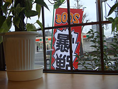 到着。外装は関東平野がよく似合う、地方のパチンコ屋みたいな箱。内装はアバウトなカントリー。別になにも飛んでいない。注文は、当然初体験の「神戸風カリードリア」は次の機会においておいて、創業者が毎日20〜50Kgもの肉の試作・試食を繰り返して開発したと噂の爆弾ハンバーグ。そんなに食べたら味わかんなくなる気もするけれど。商標登録済だい。