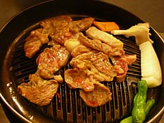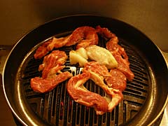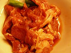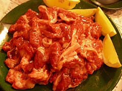 出てきた羊肉を見ておどろたべ。ジンギスカンっていうと冷凍薄切りラム肉っていうイメージしかなかったんだけれど、ここの肉は焼き肉屋さんより分厚いよ。どう見てもうまそうな肉だわ。