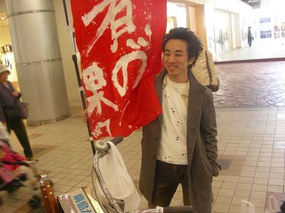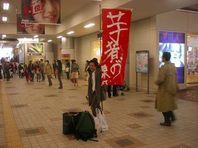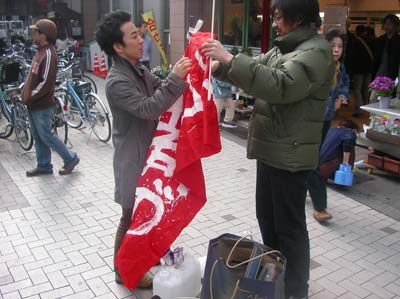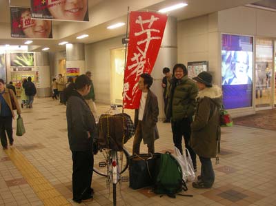 | オシャレタウンの駅にて待ち合わせ。団旗は地面に落としてはいけません。 |