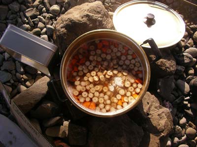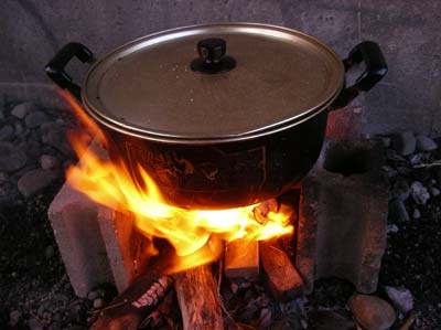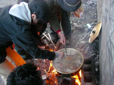 | 芋を煮ます。薪拾いがすごい大変だった。 |