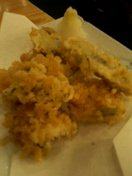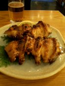 | 冬なので湯豆腐。 | 手羽焼き。タレで頼んでも「塩の方がウマイ」との理由で塩がきた。ウマイ。 | アナゴの天ぷら。サクッとしてうまい。 | 肉団子にエドシカ。 |