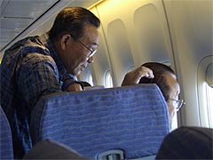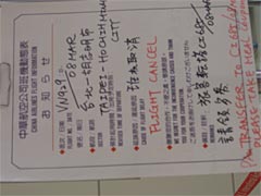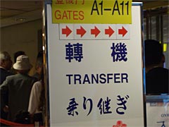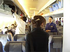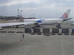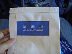 紫のチャイナエアラインのスーツを着たスチワーデス(サービスアテンダントっていうんですかね。今どきは。)のお出迎えを受け、自分の席に向かう。ところで堀ちえみって今子供何人いるんだっけ。しかし、飛行機って外側から見るとでっかいけれど、中に入ると狭いんですねえ。着やせするタイプ。座席の前後の感覚は山形新幹線より狭いんじゃないかな。まあエコノミークラスだからなんだけれどね。この席で何時間もじっとしていないといけないのか。なんかすでにエコノミー症候群になった感じ。