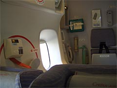 出発までの間、せっかく飛行機に乗るのだから遺書でも書こうかと思ったが、遺書の「遺」の字が書けなかったので断念。ひらがなで「いしょ」はマズイだろう。「い書」然り。しょうがないので首を伸ばして窓から外を眺めたり、備え付けの備品とか書類をチェックして遊ぶ。公立小学生レベル。