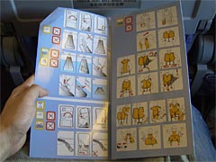 | 超複雑。でも救命胴衣は大事だよ。ネッ。 | 救命胴衣の着方講座。でも中国語でナレーション、英語で字幕。さすがチャイナエアライン。成田発でも容赦なし。 |