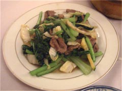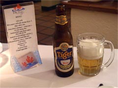 | Tigerという現地っぽいビールを飲んだら実はシンガポール産という罠。 | 肉野菜炒め。シャキシャキ。野菜がしっかりしている。 |