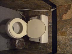 | やっとのことでエビセンゲット。日本と同じ味なんだけれどね。 | シャワー付きトイレ。どこの国の文化なんですかね。 |