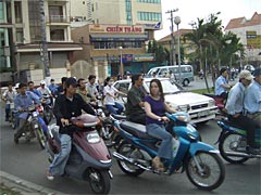 で、ガイドさんがいろいろとベトナムの国土面積とか人口とかをゆっくりと一生懸命説明してくれているんだけれど、みんな外の様子に夢中で馬耳東風。なんだこのバイク(全部スクーター)の多さは。バイクが多い多いと聞いてはいたけれど、実際にこの目で見てみると思ったより多くてビックリする。HONDAのカブに3人乗りは当たり前。三秒ごとに聞こえてくるクラクション。数年前にベトナム行った知り合いが「ベトナムのバイクで最初に壊れる場所はクラクション」と書いていたのを妙に納得。
