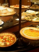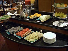 ここで朝飯をタダで食べられるのは当然宿泊客だけなので、レストランの入り口で 「ROOM NUMBER PLEASE」とチェックされる。ルームナンバーを聞かれた同行者は、予期せぬ展開にあわてふためき、英語っぽい発音で「AHH、SAN-NI-SAN」と答えていた。サンニーサンっていうのは英語か。たまたま聞いた側のホテルの人が少し日本語がわかるらしく、ちょっと困った顔をしながらも入れてくれた。よかったよかった。人間なにごとも経験だ。サンニーサンか。マルハッチ。