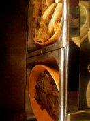 サンニーサンで無事レストランに入り、No Smokeな席に案内される。レストランで朝飯っていうのも人生初だな。人生初が多い旅だ。今まで何やっていたんだ俺。朝飯といえば、以前T君と釣りにいったとき、行く途中に吉野屋で朝飯を食べようということになった。で、店に入って「朝定食ください」と元気いっぱいにT君が注文したら、元気いっぱいの店員さんに「すみません、早すぎます」といわれていた。若き頃のAM4:30のお話でした。