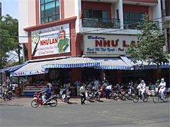 本日のディナーは、夕方になっても昼に食べた揚げ物が胃袋の中でタプタプいっているので、軽く買い食いですませようと、デパートでビールとキムチとソーセージとベトナムスイーツなどを購入し、裏通りにある「NHU' LAN」という総菜屋みたいなお店でバインミーと肉まんをドンで買う。