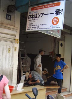 ぼけーっと解体現場を眺めていたら、「なにか御用ですか?」と色白ぽっちゃりメガネの日本人女性が話しかけてきた。なんの誘惑だろうと話を聞いてみたら、この女性はツーリスト屋の店員さんで、つい最近期待に胸を膨らませて日本からこのツーリスト屋に就職するためやってきたのだが、勤務先は工事中だったそうだ。さすがベトナム。同情に値する身の上だが、申し訳ないが面白い。で、ツーリスト屋は解体中のビルで無理矢理営業中とのこと。円からドルへの両替も無事にできた。ちなみに一万円で84ドル。1ドル=119円也。