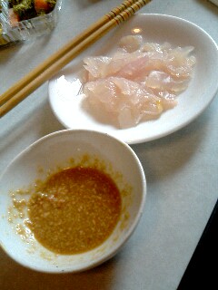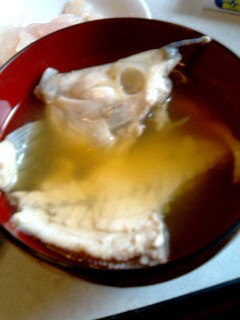 | カワハギの肝和え。和えてないけど。 | カワハギの澄まし汁生け贄風。 |