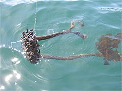 その後、知っている動物の動き全部を試すが全然だめ。二時間やるが全く釣れない。途中一回、リールを巻く手がすごく重くなり、このやる気のない引きと重さはマタコだなと信じて、慎重に、慎重にリールを巻いたところ、海草が売られている植木のように根っこごと上がってきた。だめだこりゃ。