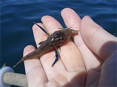 | 手乗りホウボウ。かわいいけれどね。 | 太陽と海鳥と青空。プライスレス。 |
