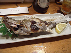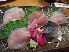 店にはいると店内はお客さんで一杯。どうにかぎりぎりカウンターの奧が二人分空いておりセーフ。すぐ後にきた別のお客さん達が断られているのを横目で見ながらお刺身盛り合わせや焼き魚などを注文。店の壁には地元の新聞に取材された時の記事が張られ、店主の蘊蓄が語られている。これでまずい訳がないとニコニコしながら料理を待つ。待つ。待つ。待つ。長いこと待つ。で、不安になった頃にやっとお刺身登場。こぎれいに5品ほど盛られており、ええと、サバとヒラメとイサキとキンメダイとムツかな。適当。ヒラメと思われる白身の切り身にワサビをのっけてちょいとつまんで醤油つけてパクリ。うん、ほら、あれだ、うん、だめだ、生臭い。っていうか臭い。なんかヌルッとしている。ちょっとやばいかも。でも他に4品あるしと次々とパクパクパクパク。うん、ごめん、なんかジンマシンがでそう。とりあえずワサビ多めに使えば大丈夫だろう。さらにウーロン茶で消毒すればばっちりなので全部食べる。そのあと出てきたイサキの塩焼きも微妙。でもこっちは火が通っているから安心二重丸。
