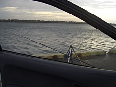 千葉をオーバーランしてたどり着いた波崎新港。夜が明けても相変わらずの強風で、釣り竿を並べてクルマの中から見守るのが精いっぱい。隣を見れば、男の子が毛布にくるまってクルマが戻ってくるのを待っていて大変かわいい。たぶん父ちゃんがクルマでトイレにでもいってしまったのだろう。