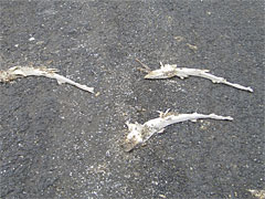 途中、魚が大量に降り積もっていたり、素敵な看板があったりと、海の散歩は楽しいなと。でも寒い。ところで、「若人よ海へ」の看板だが、別に若人あきらが海釣りに来てテトラポットから落ちて記憶喪失になったのとは関係ない。たぶん。