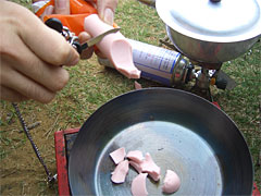 | 風が強くても米を炊く。 | 魚肉ソーセージ。 |