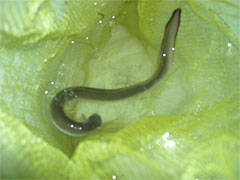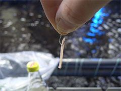 | 魚肉ワーム。さっきっぽにつけるそうだ | アバウトな網。ビニール袋で穴が空いている。 |