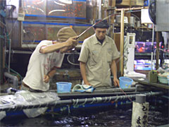 | 金魚がエサですか。 | すぐ釣れるみたい。楽しそう。 |