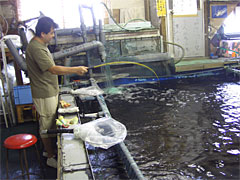 葛飾区新小岩まで評判が及んでいるんだから、江戸川区篠崎あたりではそれはもう有名であろう釣り堀「つりぼり金ちゃん」へやっとこさいってきた。あれ、電話帳だと「つり堀金ちゃん」だな。まあいいや。ここは噂が確かならば鰻や雷魚や鯉や鯰やブラックバスが問答無用で釣れるということで、勝手にベトナムの釣り堀みたいなのを想像していたら、アラ懐かしい室内型の釣り堀じゃないですか。埼玉県の南越谷にある、同じ形式の室内釣り堀に小学生の頃通っていたなあとちょっと懐かしい。そこには雷魚は泳いでいなかったと思うが。