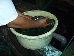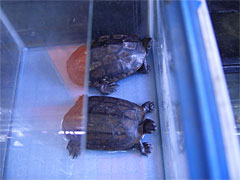 | ザリガニ。これもエサかな。 | 亀。江戸川で拾われたのだろう。 |