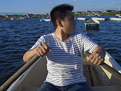 | 強風の中、オール係は辛い。人ごとだが。 | こんな岸近くの浅場がいいらしい。 |