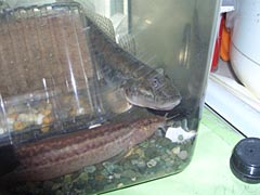 くそう、妙にデカいハゼしか釣れなかった。水槽に入れてみたりして。おお、かわいいじゃないですか。よし、情が湧く前に食べなきゃ。きゃ〜跳ねた〜。いや〜んピクピクいう〜。