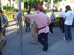 晴れた青空、白い雲、今日は楽しいバス観光。鳩バス並みに黄色いバスに乗り込み、なぜか道路の右車線を走ってどこかを目指す。当然目的地なんか把握してないやい。このバスには添乗員にプラスして、「ガイドさん」までが乗り込んでいる。ガイドさんといっても初期の山田邦子がやっていたソレではなく、ピンクのムームーを着た超早口な50歳くらいの日系人のオバチャンだ。長時間のフライトで疲れ切った身体をアメリカンな本場物のマシンガントーク(主な内容はブッシュの悪口)が打ち砕く。勘弁。でも天気はいいし、景色も楽しいなと。