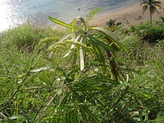 ここでハワイワンポイントアドバイス(当然受け売り)。ハワイはマンゴーがいっぱい採れるんだけれど、マンゴーはなんとウルシ科の植物なので、人によっては触ったり食べたりするとかぶれるらしい。その辺に咲いているマンゴーの花も、鼻を近づけて「うーん、いい香り」とかやると、鼻の穴が痒くなる場合があるので要注意。本当だってば。
