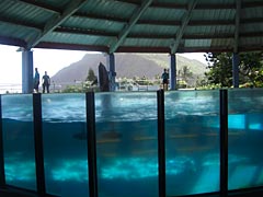まだまだ続くよ団体バス旅行。続きましては海岸線を東の果てまでいったところにある、「シーライフパークハワイ」という、ちんまりとした八景島みたいな水族館にやってきた。朝からジャムパン一個しか食べていないのに水族館。有無をいわさず水族館。入り口でチケット代わりにカニのハンコを手に押されるのがなんか嬉しいなと。![]() |