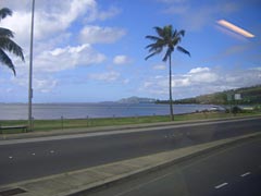 シーライフパークを一時間ほどで後にして(せわしない)、今度は西の方へ延々連れて行かれる。アラモアナ公園とかいうところで集合写真を撮って15分ほどゆっくりしたらまたバスで移動。ゆっくりできないって。ああ、お腹が減ったよう。