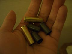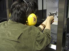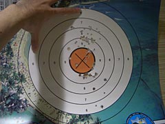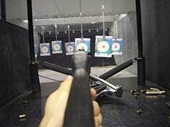 鉄砲を何種類か撃てるコースを申し込んだので、次々に銃が入れ替わる。ライフルの次は、銀玉鉄砲みたいなルガーなんたらかんたらとかいうピストル。パンパンパン。撃ったときの衝撃はそんなに強くないけれど、それでも銃身が上を向いちゃう。結構難しいものなのね。