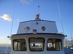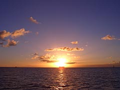 日が傾きかけた頃、何処に行くのか知らないけれど出航。必要以上の強風の中、バッシャンバッシャンと波を切り裂きながら進むSashimi II号。さ、さむい。海から吹き付ける冷たい風が容赦なく私の体温を奪っていくよう。長袖着ていてもこんなに寒いとは。いくらハワイといえども夜釣りを舐めてはいかんね。ブルブルブルブル。ちくしょう。なんでアメリカ人はどんなに寒くても半袖なんだ。あの人達、ぜったいおかしい。腰にホッカイロでも貼っているんじゃないかな。実は。