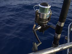 辻説法が終わると、今度はケインコスギみたいな日系の兄ちゃんが、ケインコスギみたいなしゃべり方で釣りのやり方をみんなにレクチャー。今回の釣りは「底釣り」という釣りで、一番下にオモリがあって、その上に針が二つ付いているだけの単純な仕掛けだ。その仕掛けを海底付近にユラユラさせてねとのこと。天秤とか一切なし。この辺のアバウトさはベトナムと同じだ。ああ、リールのハンドル(クルクル回す部分)が左側に付いている。さすがアメリカ、リールまで左ハンドルだぜ。