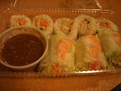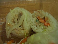 | 生春巻き。タレの甘味噌がうまーい。 | ツナとご飯が入っています。これはこれでうまい。 |