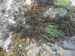 | 右に歩いていくと岩場がある。 | 海草がいっぱい生えていて楽しい。 |